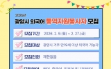 광양 박인석 기자2026. 02.09[AI 호남뉴스]광양시는 각종 축제와 국제행사에서의 통역 지원과 외국인 민원 안내 등 다양한 분야에서 통역 봉사에 참여할 시민 외국어 통역자원봉사자를 2월 9일부터 2월 27일까지 모집한다고 밝혔다. 모집 대상은 공고일 기준 광양시에 거주하는 만 19세 이상 시민으로, 영어·중국어·일본어를 비롯한 기타 외국어 구사가 가능하면 누구나 신청할 수 있다. 선발된 통역자원봉사자는 매화축제 등 광양시 주요 축제와 각종 대형 행사에서 외국인 대상 현장 안내 및 통역을 지원하게 되며, 관내 기관·업체 협조 요청에 따른 통역 지원, 외국인 ...