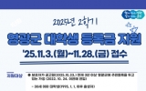 영광 박인석 기자2025. 10.23[뉴스채널](재)영광군미래교육재단(이사장 장세일)이 군민의 교육비 부담을 줄이고 지역의 미래 인재를 육성하기 위한 2025년 2학기 대학생 등록금 지원사업을 시행한다. 지원 기준은 ▲보호자가 공고일(2025. 10. 23.) 기준 3년 이상 영광군에 주민등록을 두고 있는 가정 ▲30세 이하 대학생 ▲직전 학기 12학점 이상 이수하고, 평균 70점(C학점) 이상 취득 등 요건을 충족하여야 한다. 지원 대상자로 선정되면, 해당 학기 등록금 중 실제 등록금 납부액 기준으로 최대 200만 원까지 지원받을 수 있다. 신청은 2025...