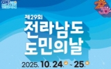 전라남도 박인석 기자2025. 10.23[뉴스채널]전라남도가 200만 도민이 함께 소통하고 화합하는 제29회 전라남도 도민의 날 기념행사를 24일부터 이틀간 전남도청 앞 OK도민광장에서 개최한다. 올해 도민의 날은 도청사 이전 20주년을 맞아 ‘20년의 변화와 30년의 대도약!, 더 위대한 전남’을 주제로 도민의 자긍심을 높이고 전남의 새로운 미래 비전을 공유하기 위해 다채롭고 감동적인 프로그램으로 마련됐다. 기념식은 식전공연, 도민헌장 낭독, 자랑스러운 전남인 상 시상, 전남의 역사와 미래를 담은 주제공연, 인공태양 연구시설 유치 다짐대회, 희망의 불빛과 힘찬 전남...